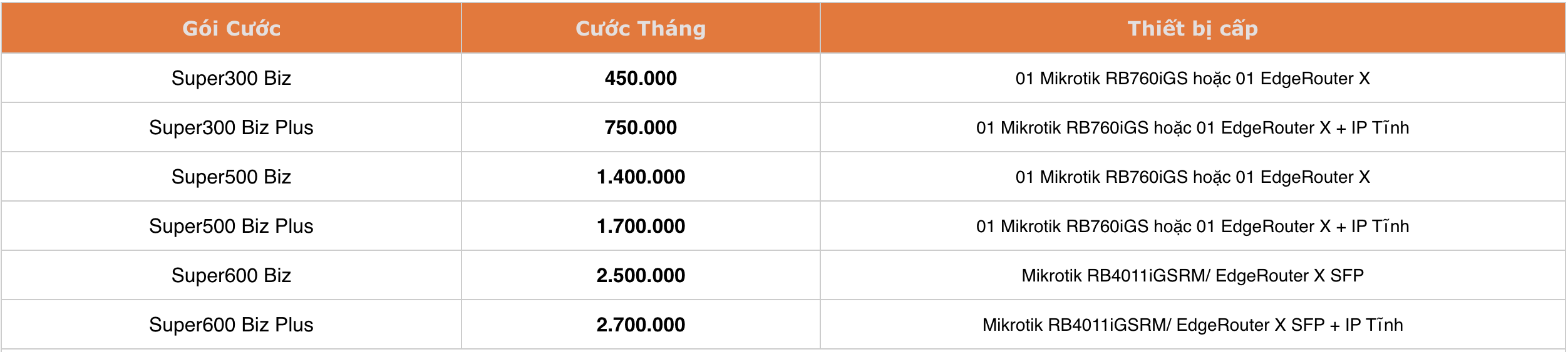 Để đáp ứng nhu cầu sử dụng Internet cáp quang tốc độ cao của các doanh nghiệp về từng mô hình kinh doanh nên cần một đường truyền ổn định hơn, nhanh hơn để truy cập nhiều hệ thống giao dịch quốc tế và số lượng từ 20 tới 400 user.